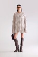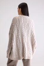 Extra oversized cable knit sweater in a beige wool merino blend.