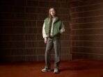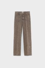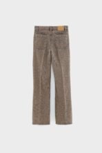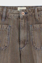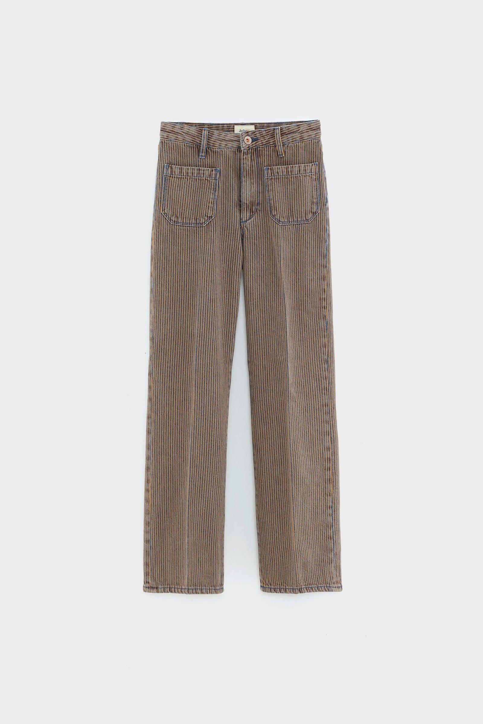 Regular flared jeans with patched front and back pockets. made from striped cotton denim in a blue and camel colorway.